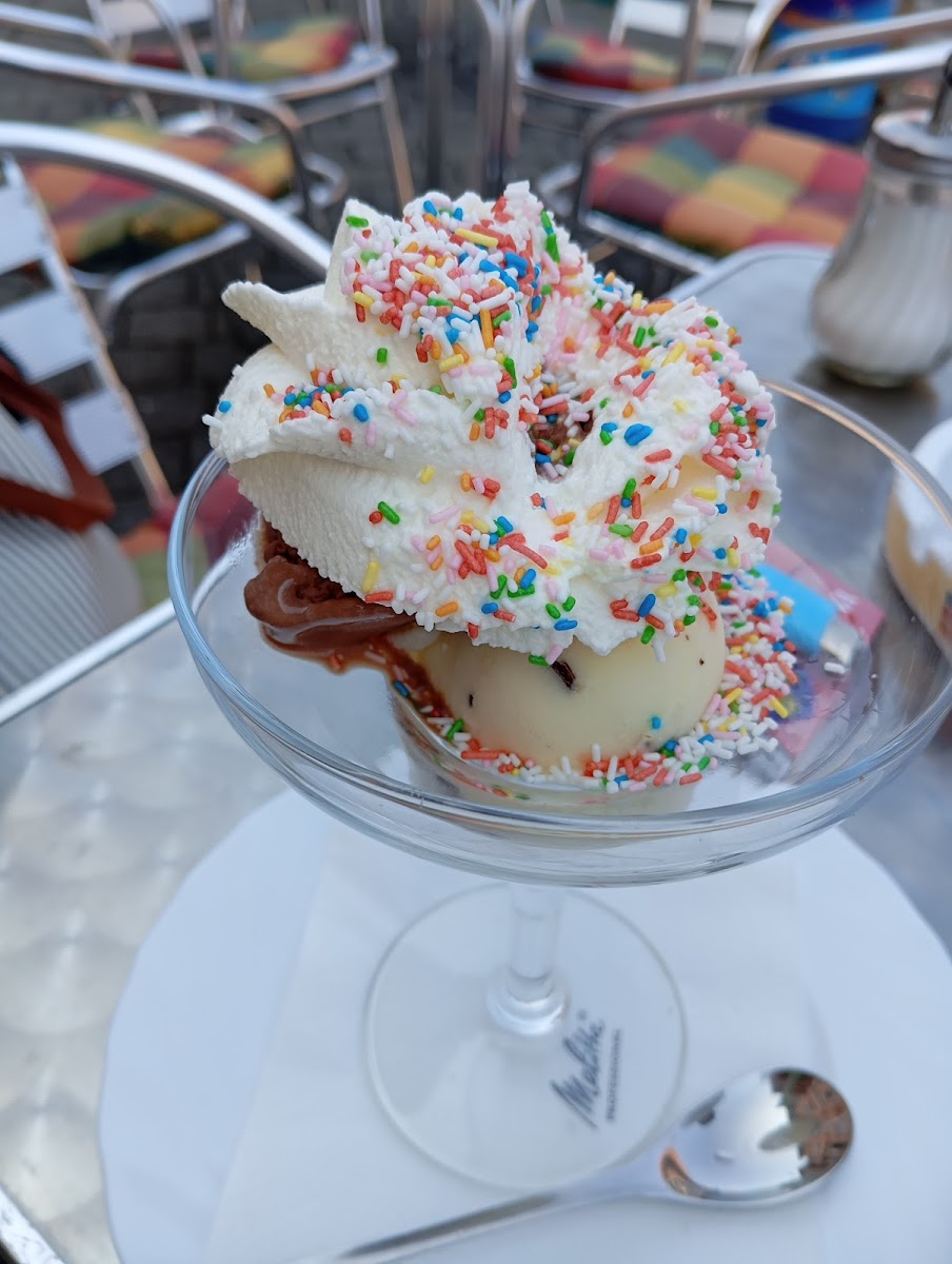 But don't just take our word for it. Nadine Randel describes a stunning fig ice cream sundae, featuring warm figs on a bed of creamy vanilla ice cream, topped with freshly whipped cream and roasted almonds. This dessert is highly recommended for fig lovers, showcasing the café's knack for blending traditional sweets with innovative flair. And for those seeking a taste of nostalgia, their exquisite chocolate ice cream will whisk you back to childhood memories of school cocoa.